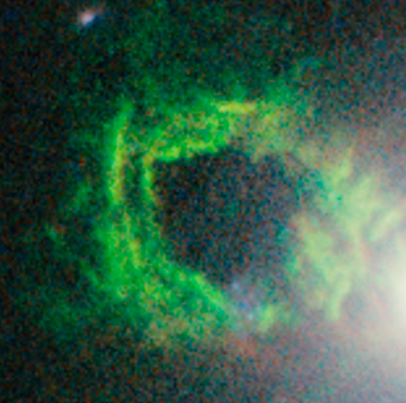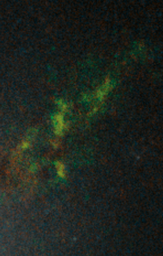 The filaments of gas and dust are in and make up the circumgalactic medium, a region surrounding galaxies that play a role in the life cycles of galaxies. This is a diffuse halo of gas and dust, a dumping ground of material formed by stellar processes, and a reservoir for star formation. The green signature of oxygen indicates that this is not pristine gas, but has been enriched with heavier elements by successive generations of stars.