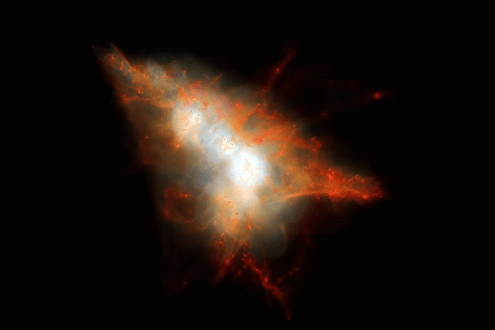 The LAEs are surrounded by simple, primitive galaxies. This was a time before ice and dust existed in the universe, as the elements heavier than hydrogen and helium had not yet been coked up by stars. The simple, compact-star forming knots had high star formation rates.