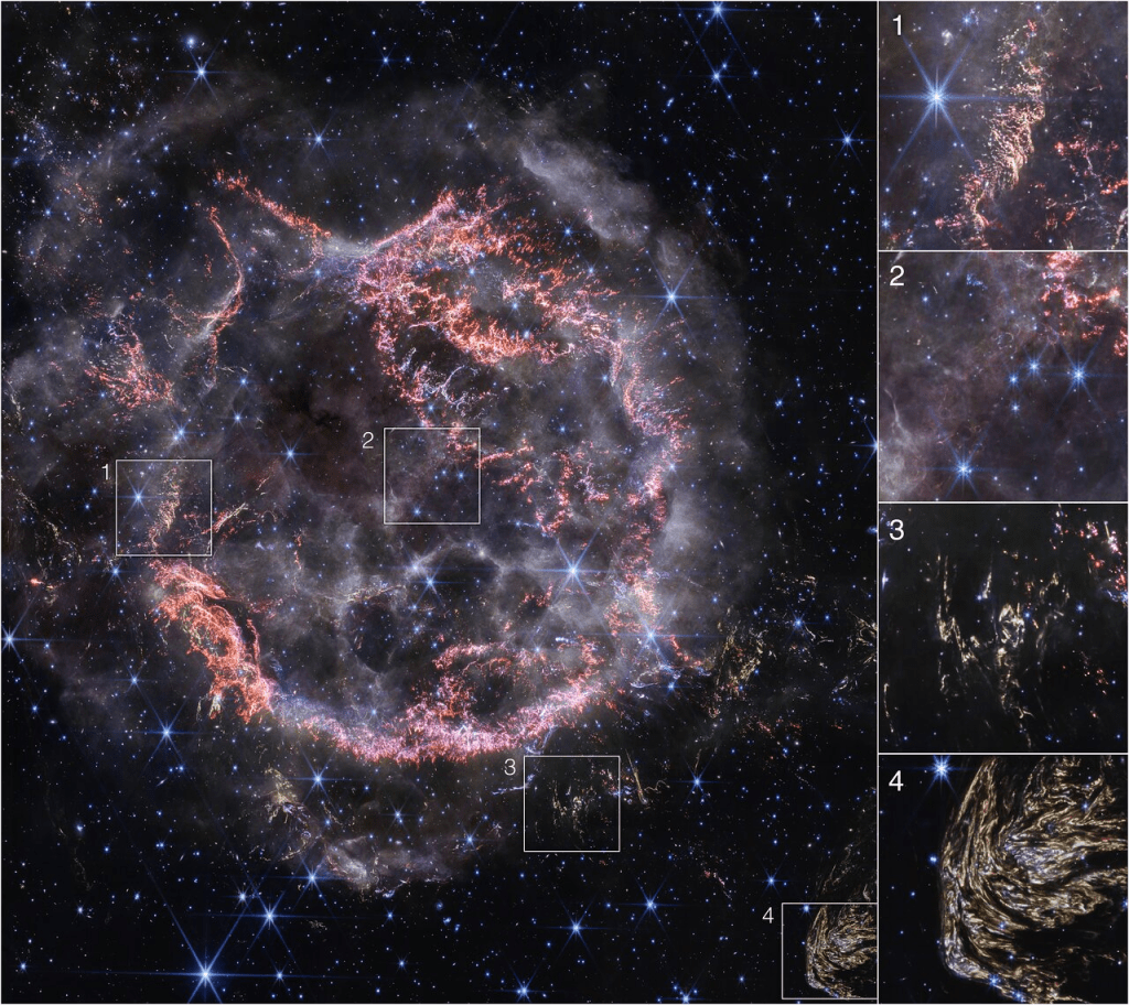 Cas A (MIRI image): NASA, ESA, CSA, D. Milisavljevic (Purdue University), T. Temim (Princeton University), I. De Looze (UGent), J. DePasquale (STScI)