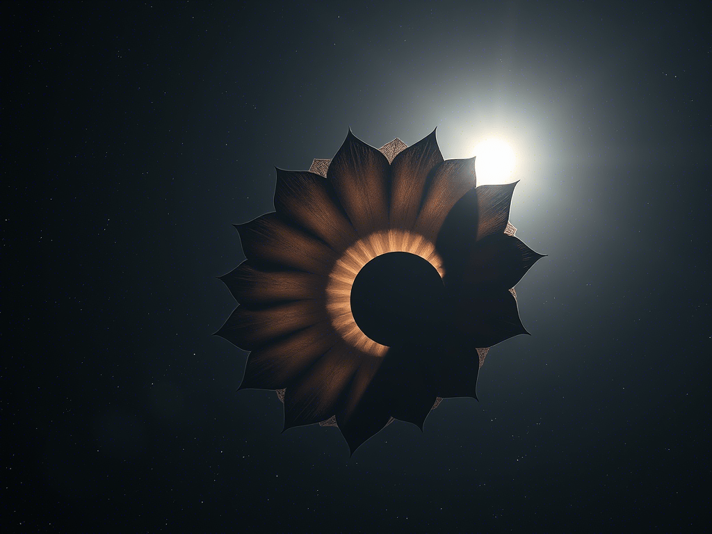 The flexing memory-metal ribs snap into place, morphing the edges into petals, and optimising light blockage. The tips contain thin yet hardy mylar solar sails to stabilise the orbit using radiation pressure. At the heart of this celestial parasol is a nuclear reactor, a shadow of the furious furnace nearby. The fusion core powers thrusters for micro-adjustments, keeping the megastructure aligned and oriented. Tension, spin and the gentle pressure of photons are sufficient to stabilise the starshade.